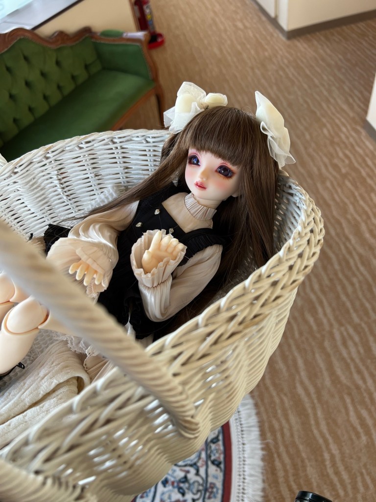 Xにも載せたもの。まとめた写真掲載はまた別の記事にて。ウィッグはお迎え当時につけていたもので、チュールリボンの髪飾りをつけてみました。この前髪ぱっつんハーフツイン三つ編みブラウン(長い)がよく似合って可愛いからずっとつけていたいんだけど、ちょっと傷んでしまってて…。色んなウィッグも試していこうかなと思っているとこ。