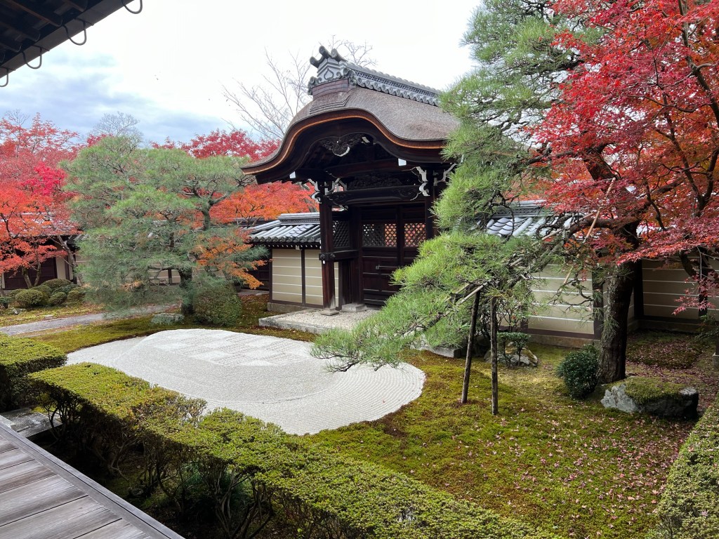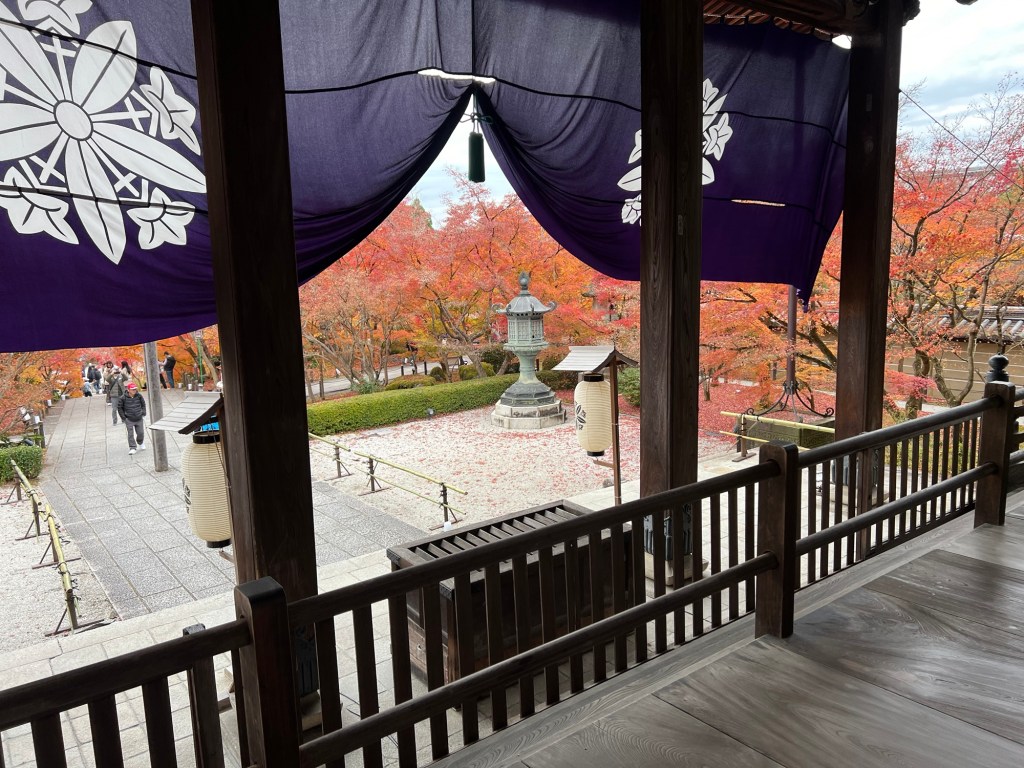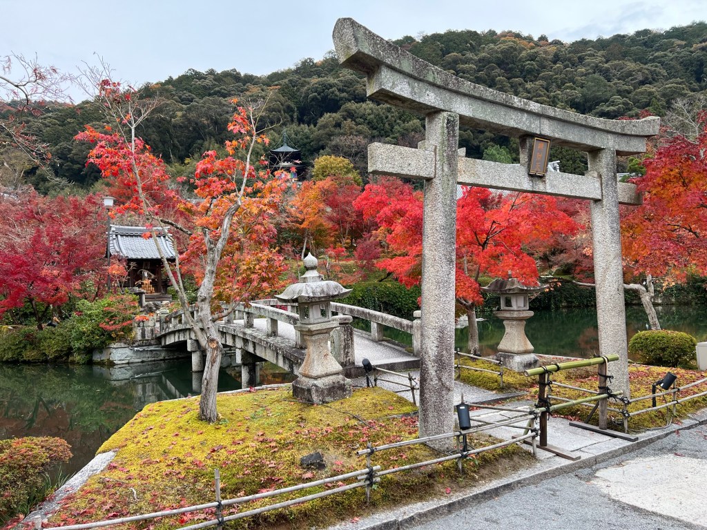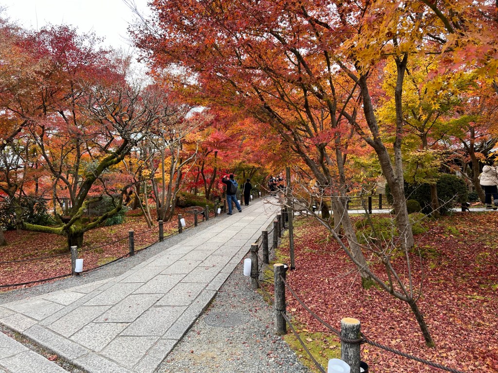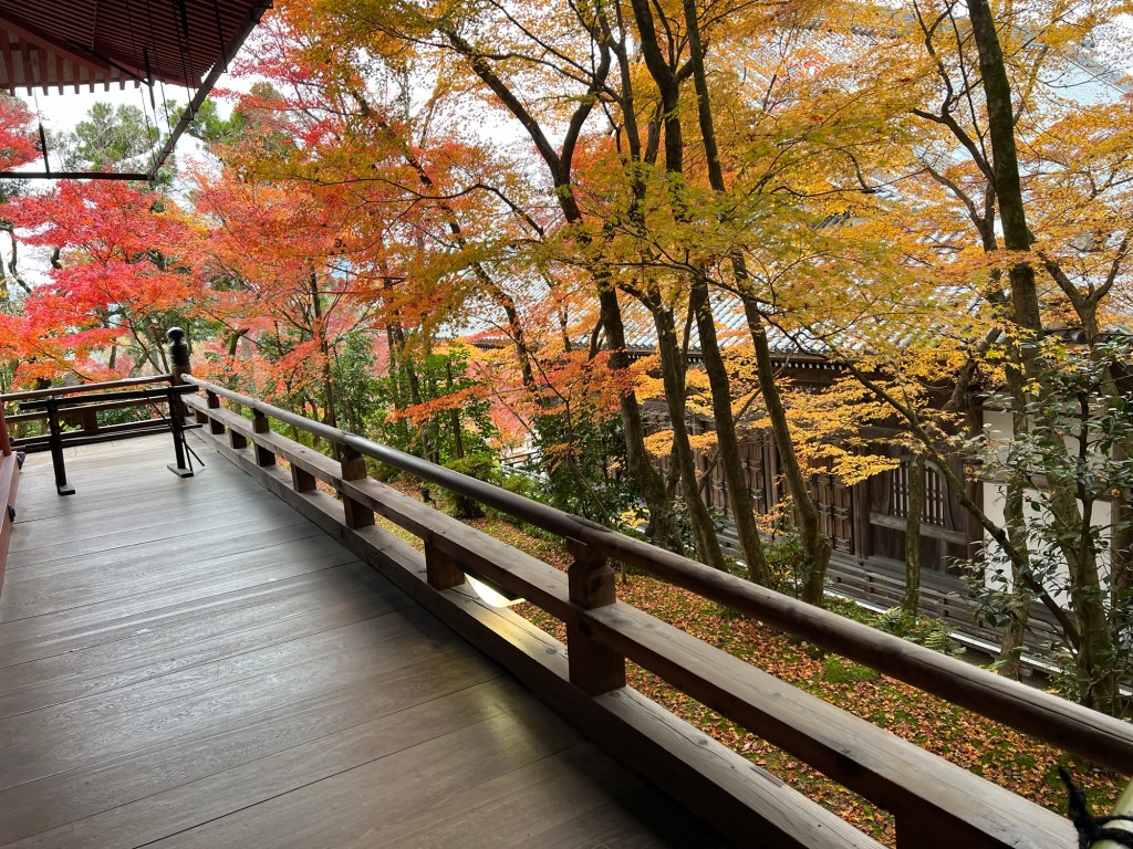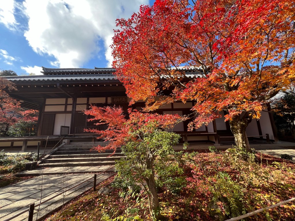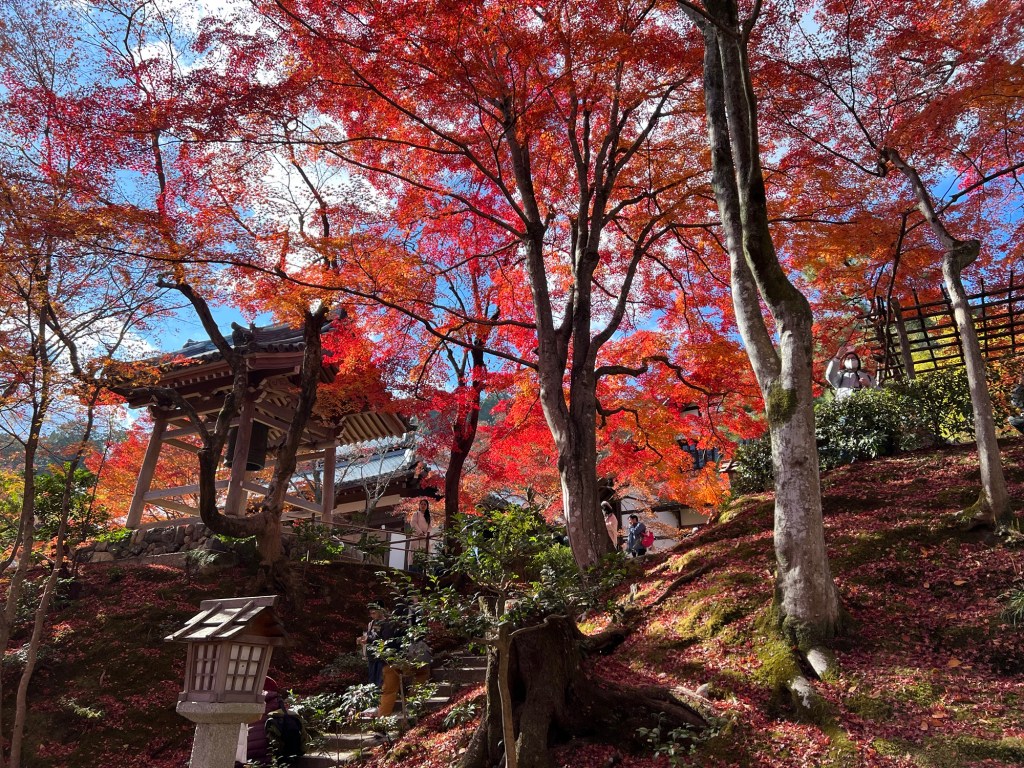 青空に紅葉がよく映えて素晴らしい。京都の紅葉シーズンは11月下旬が一番良いらしく、12月上旬は落ち着いてくる頃…みたいな情報をどこかで見かけたので心配していたのですが、全然大丈夫でした。