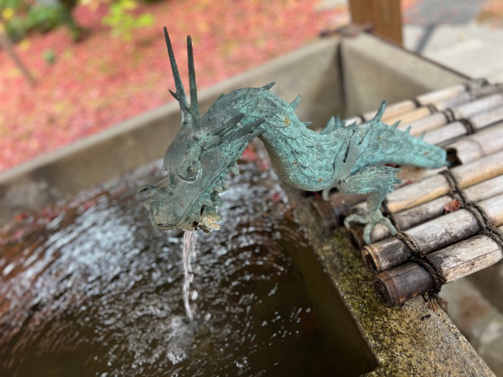 ぐるっと見て回って、本堂の阿弥陀堂から出る。長い階段を降りると御手水が…。