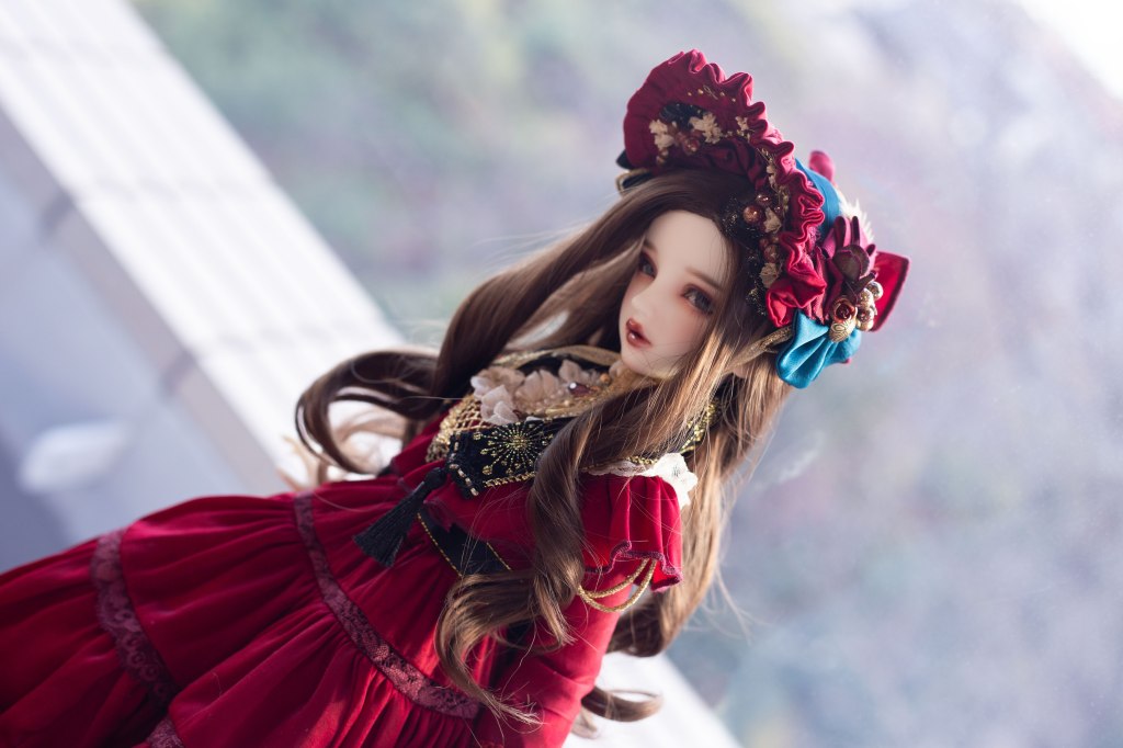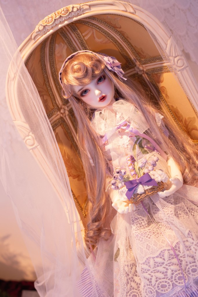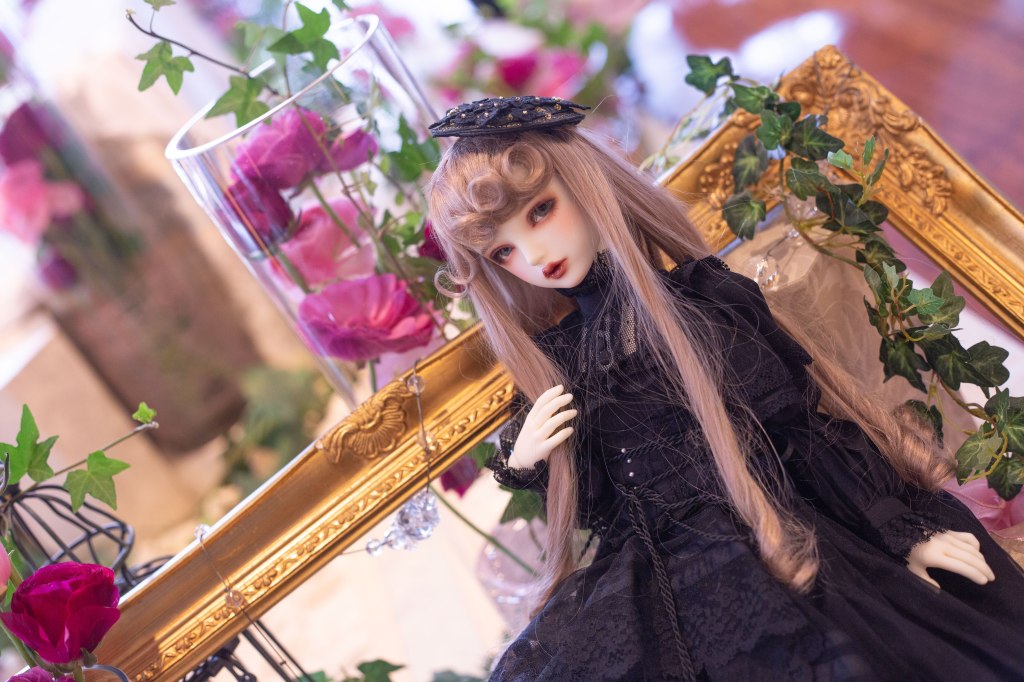 こちらのドレスは永久薔薇園様製で、冬ドルパでご縁があったもの。帽子と花かごはセットでHenriette様より。違うディーラーさん同士ですが、こうしてばっちりの組み合わせが見つかるとこれもまた嬉しいです。結構明るい色のヘッドアクセサリーが沢山あるので、白系ドレスも開拓していきたいなと思いました。