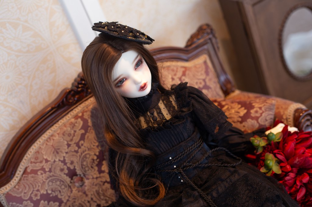 ドレスはpsycho_lab様、ヘッドドレスはヒヤシンス・ヲぺ様。ヘッドドレスはドルショで購入したばかりで、早速出番があって嬉しいです。シンプルなデザインに金のビーズで、どんな黒系ドレスにも似合いそう。黒ネルちゃん。(??)