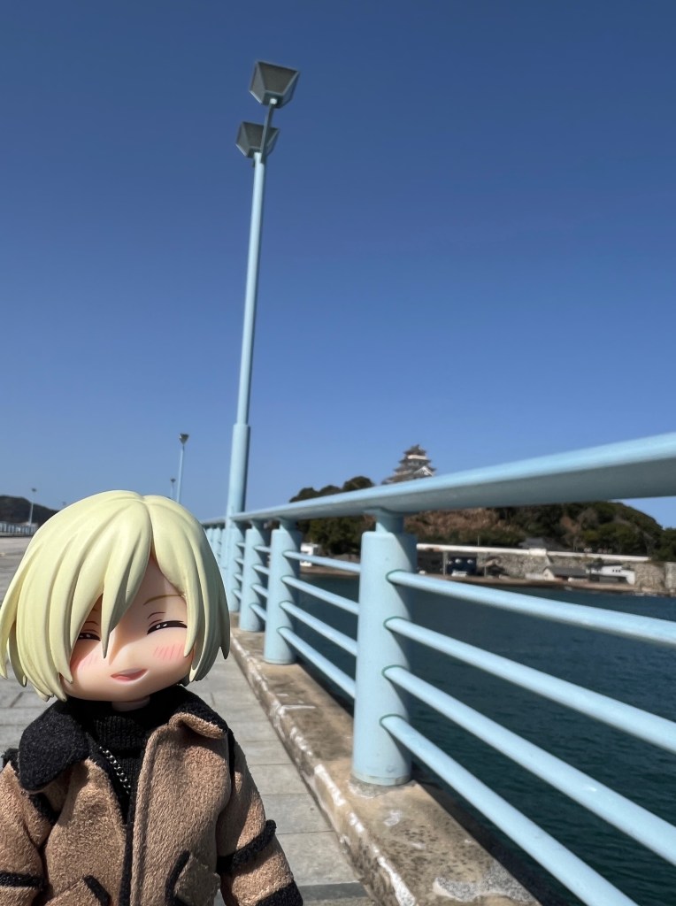 たしか勇利が走っていたのは反対側の歩道だったような、と思うのですが、海と城が綺麗に見えているからまあいいか。ここは結構風が強くて、うっかり荷物を飛ばされないようにと思ってゆっくり撮れなかったので、もし今後行く方がいらっしゃいましたらご注意ください。