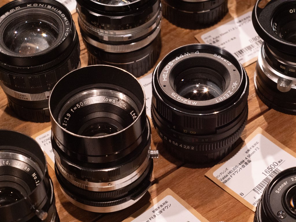 新宿にある北村写真機店やレモン社なども考えたのですが、最終的に秋葉原の2ndBASEで購入しました。レンズも同じものの在庫が複数あって、それぞれ個体差なんかもあったりするので、じっくり試して「これが一番良さそうかな」と思うものを選びました。
