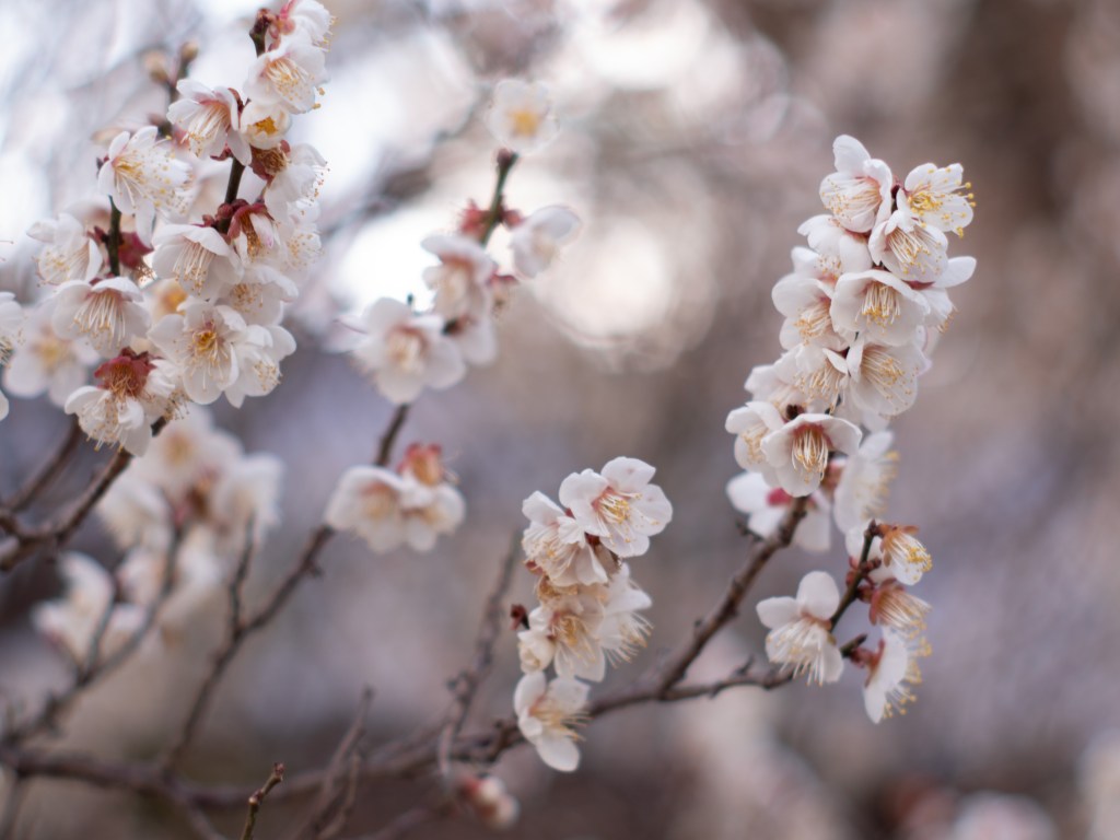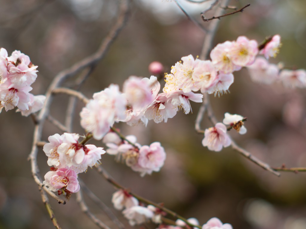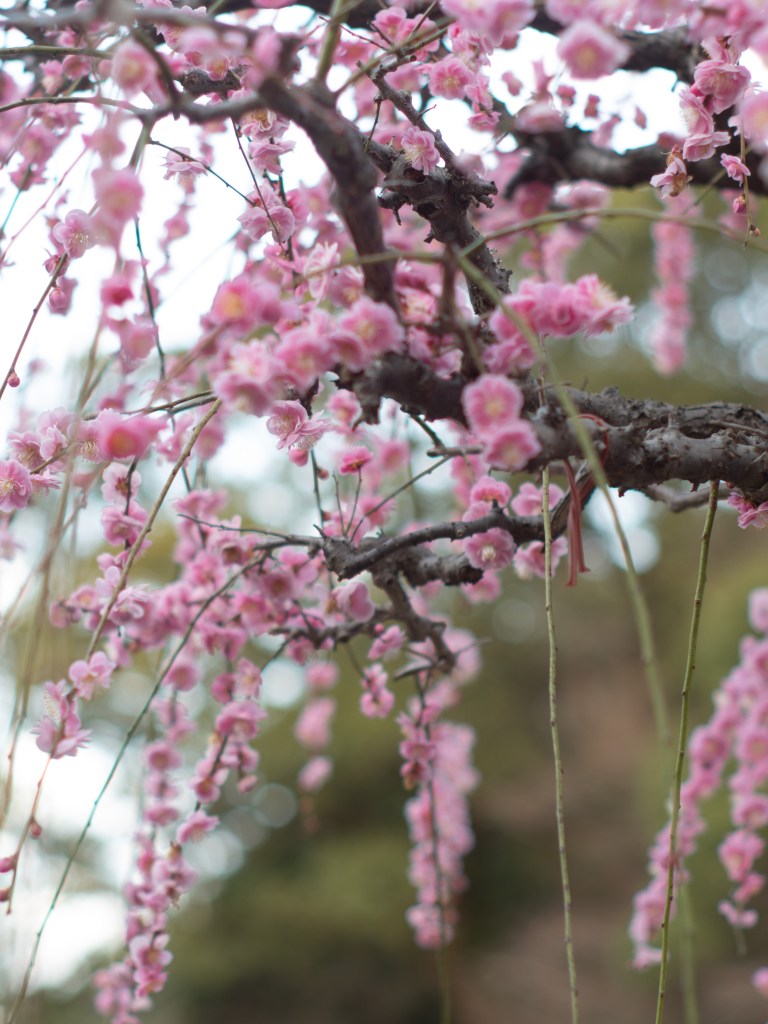 枝垂梅の写真はよくよく見てみると、ボケが円ではなくほんのり六角形なのが分かると思います。絞りの羽が六枚なので、ボケも自然と六角形になるんですね。そういう発見も、撮影していて楽しいと感じることの一つだと思います。